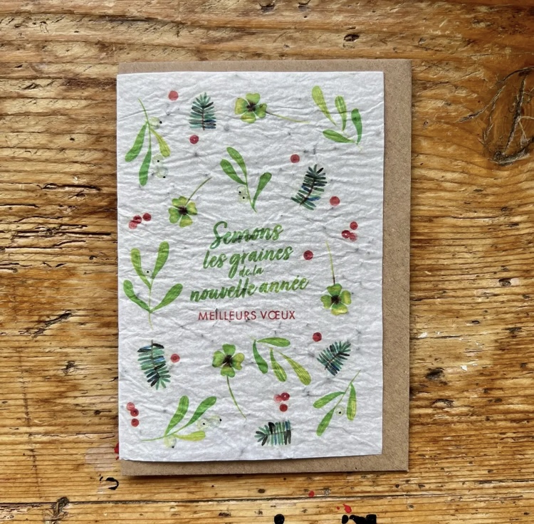 Une carte à planter poétique, imprimée en France sur un papier biodégradable rempli de graines de fleurs des champs.
