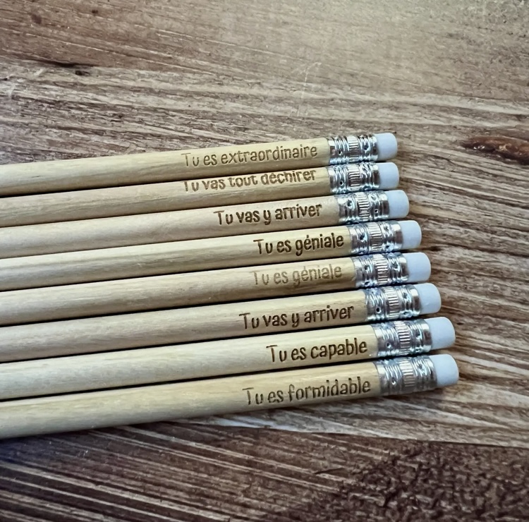 Elle est accompagnée d’un crayon inspirant portant un message comme « tu es extraordinaire » ou « tu vas tout déchirer », parfait pour noter tes vœux et intentions pour l’année à venir.