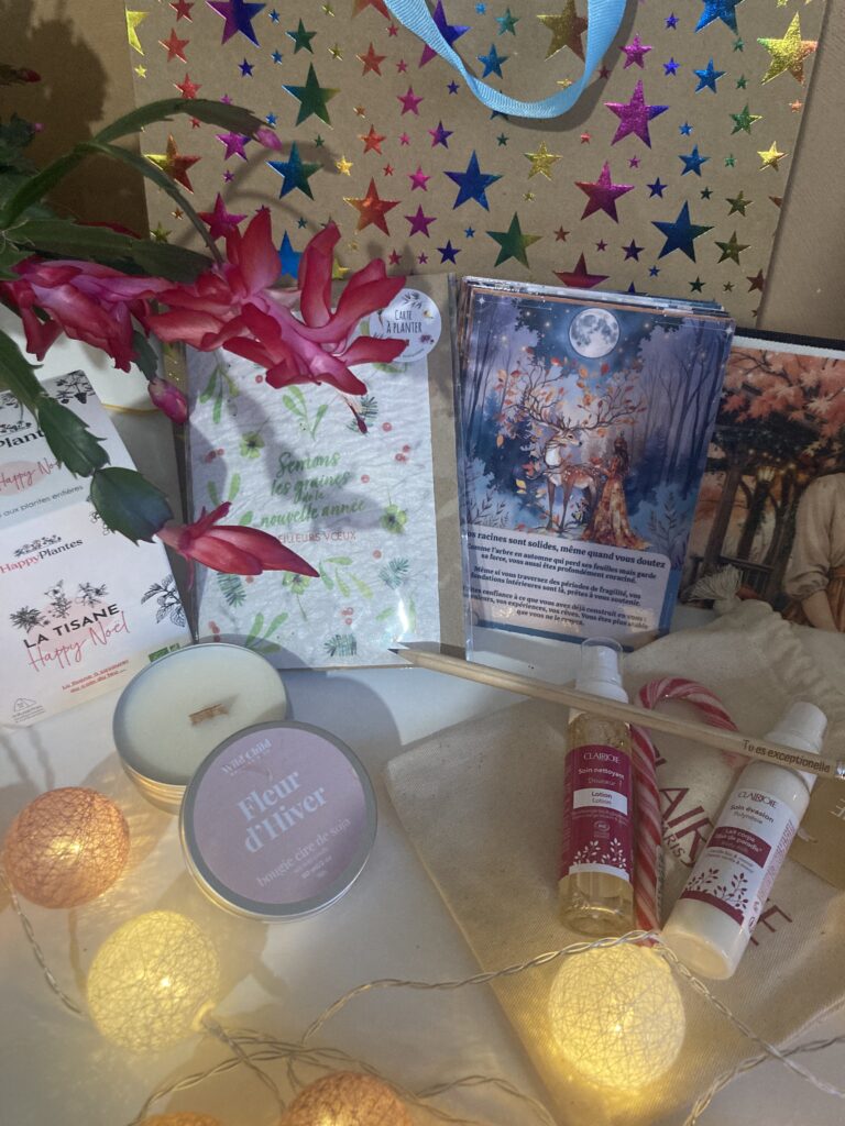 Le Coffret Féérie rassemble des créations artisanales françaises pensées pour éveiller les sens : une tisane épicée, une bougie aux senteurs hivernales, une carte à planter porte-bonheur, un oracle poétique et des soins naturels made in France.